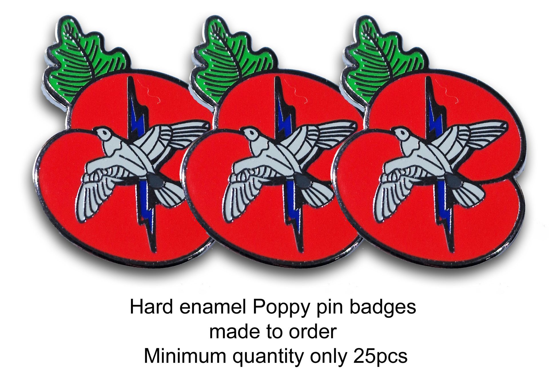 Poppy pin badges can be supplied in a vast range of variations, sizes and finishes... minimum quantity is only 25pcs...